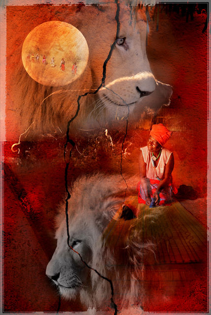 This image is about a broken Africa, where we need a renewed cycle of life. All lions, including the sacred White Lion may be extinct in the near future. Maria Khoza warned that if you kill a White Lion, you kill the world. This relates to the fact that all living things are linked and inter dependent. Mankind cannot kill off the apex of the animal kingdom without grave consequences.